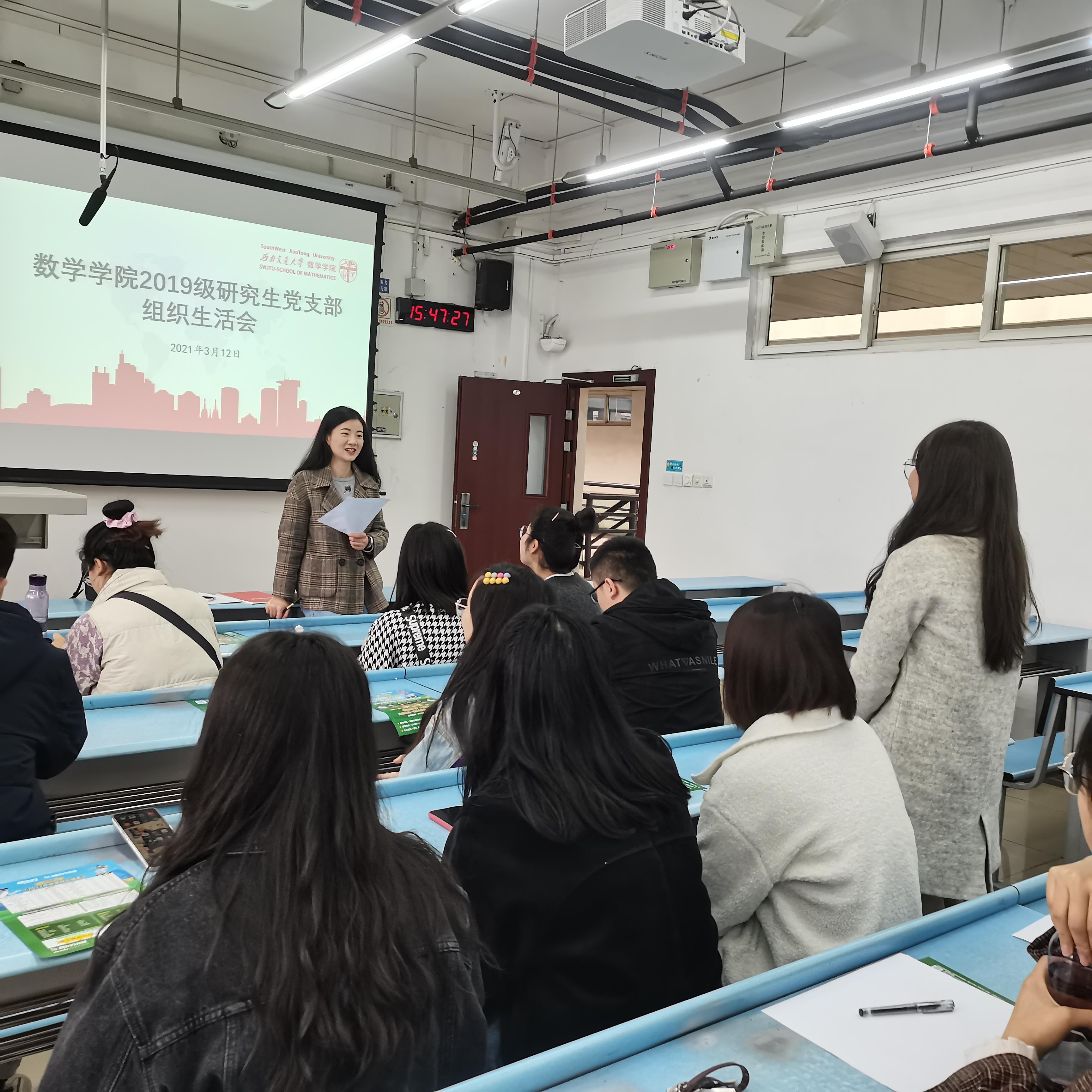 2021年3月12日下午3点,2019级研究生党支部在X2532召开2019级研究生党支部组织生活会。开展批评与自我批评、党员之间交换意见、交流思想、分享心得,达到各位党员同志意识到缺点,纠正错误,消除思想和学习工作上的分歧,加强党支部成员的团结统一,以及增强党支部的凝聚力的目的。