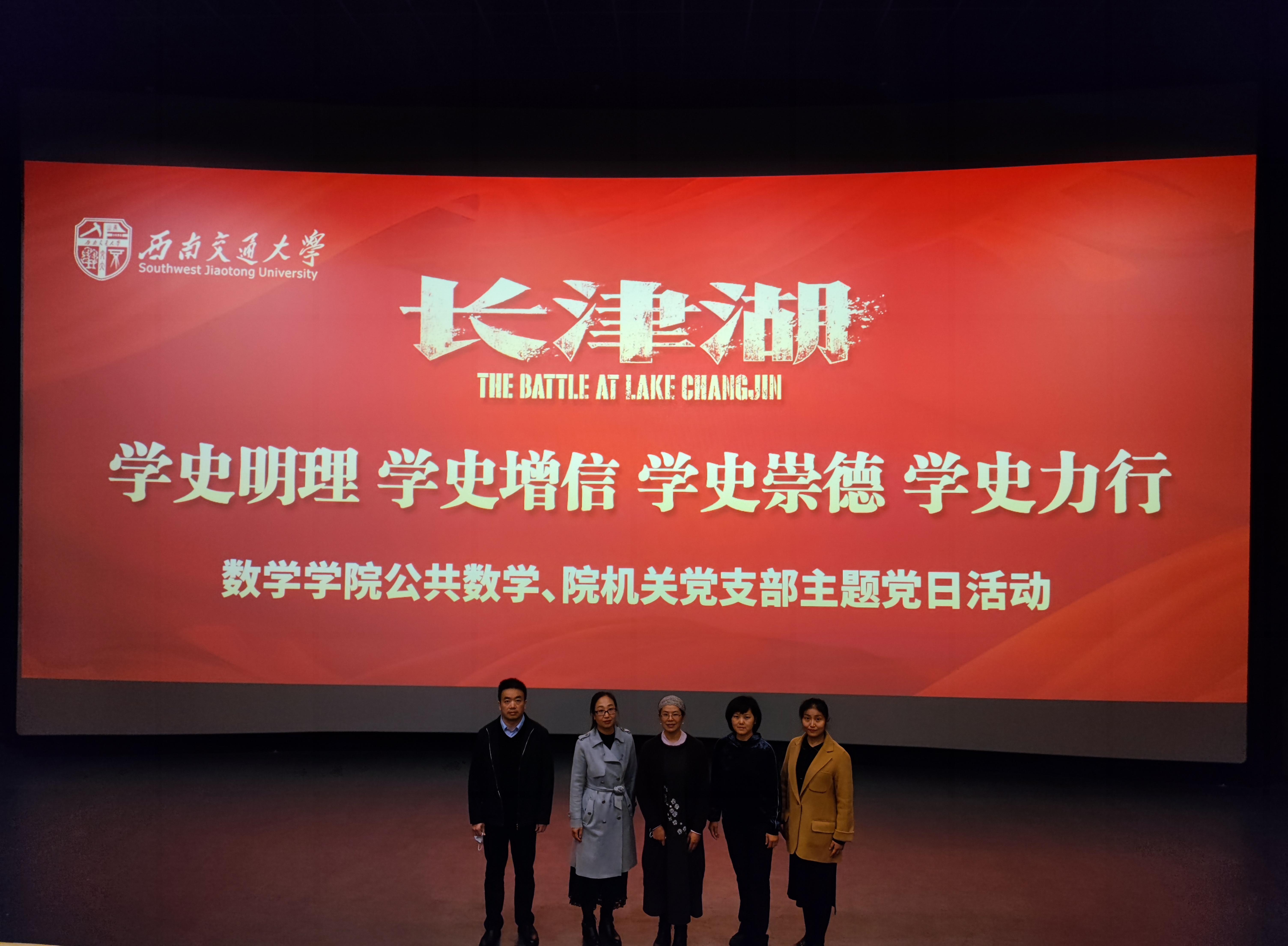 为庆祝中国共产党成立100周年,庆祝中华人民共和国成立72周年,纪念中国人民志愿军抗美援朝出国作战71周年,进一步扎实推进党史学习教育,弘扬爱国主义精神和伟大民族精神,激发党员和群众爱国爱党热情,10月28日下午,437bwin必赢国际公共数学教学与研究部党支部、机关党支部组织开展“学史明理 学史增信 学史崇德 学史力行——《长津湖》观影主题党日活动”。