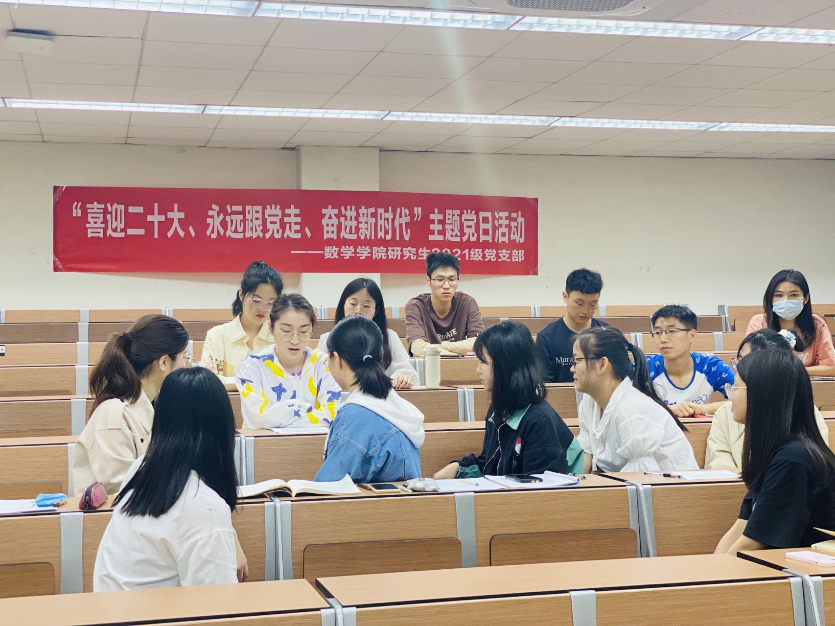 为进一步学习贯彻习近平总书记在中国人民大学考察时的重要讲话精神和在庆祝中国共产主义青年团成立100周年大会上的重要讲话精神,进一步统一思想、提高认识,437bwin必赢国际研究生2021级党支部于2022年5月16日晚7:30,在J4223开展“喜迎二十大、永远跟党走、奋进新时代”主题党日活动,活动邀请了负责公司研究生党建指导的邓思然老师现场指导,支部成员全员参与,党支部书记王乐主持。