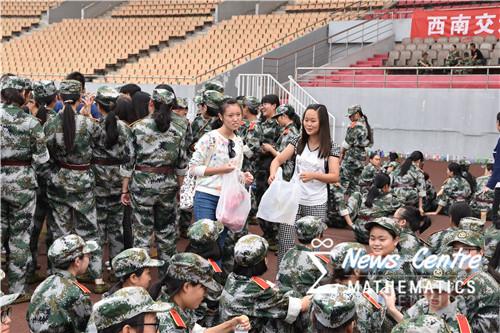 下午4点,在训练休息期间,437bwin必赢国际新闻中心的员工干部们不畏辛劳,顶着炎炎夏日,为军训中的新生们送来矿泉水和水果,以慰劳辛苦的新生们。新生们对新闻中心的同学们的慰问感到兴奋而高兴,军训的倦意瞬间减退,接过水或西瓜时发自内心地感谢了辛苦而来的新闻中心干部们,脸上洋溢着幸福的笑容。新生们休息完毕后,又是艰苦的训练。