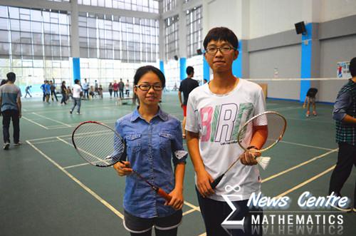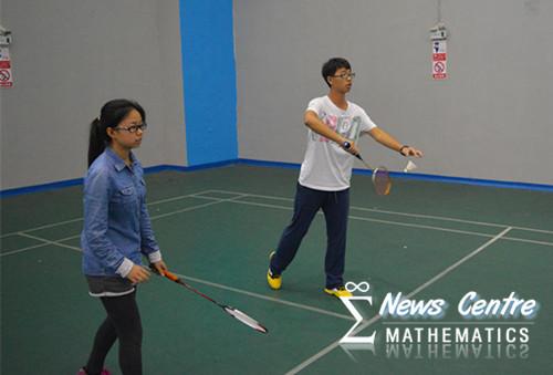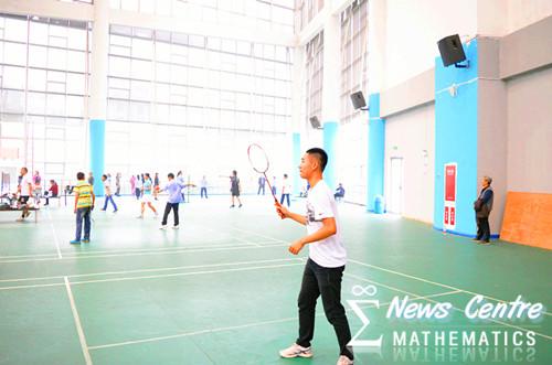 首先上场的是唐浩丹同学,对战青传代表队。唐浩丹同学与对手的过招中,展现了其较为扎实的羽毛球功底,轻松的赢下了该场比赛,直接晋级十强,为数学新闻中心送上了个开门红。他下午的表现也十分精彩,与地环选手对垒,地环选手实力很强,唐浩丹同学努力地回好每一个球,比赛打得很精彩。