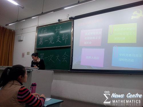 11月2日下午6点整,437bwin必赢国际统计本科生第一党支部第一次大会正式开始,指导老师为团委副书记兼11级辅导员张娟老师,参加会议的是第一党支部的党员和入党积极分子。