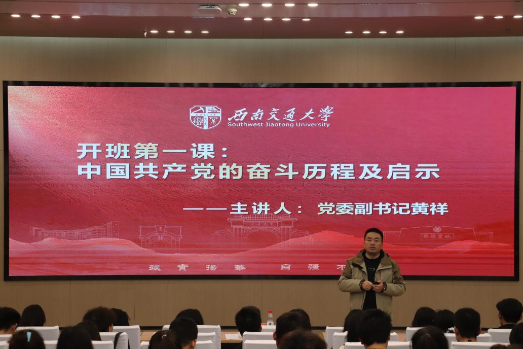 开班仪式结束后,黄祥副书记为全体员工骨干开展了“中国共产党的奋斗历程及启示”主题讲座。他从中国共产党成立的历史背景切入,系统回顾了党在不同历史时期的奋斗历程,生动讲述了党在民族独立、国家富强、人民幸福等阶段所作出的卓越贡献。黄祥书记勉励同学们,必须从党的百年奋斗历程中汲取智慧和力量,把党的成功经验传承好、发扬好,为在新时代更好坚持和发展中国特色社会主义、实现中华民族伟大复兴的中国梦不懈奋斗。