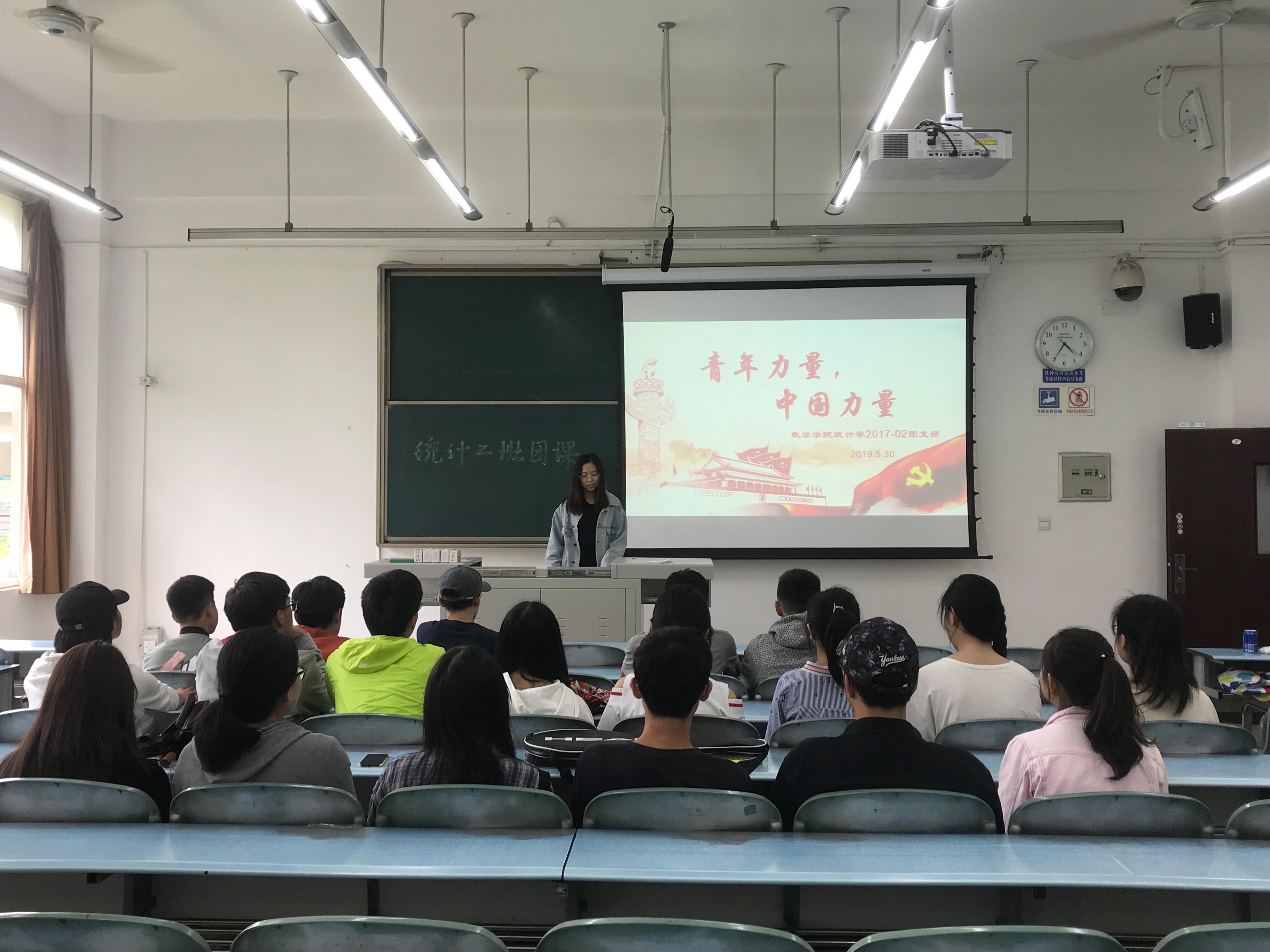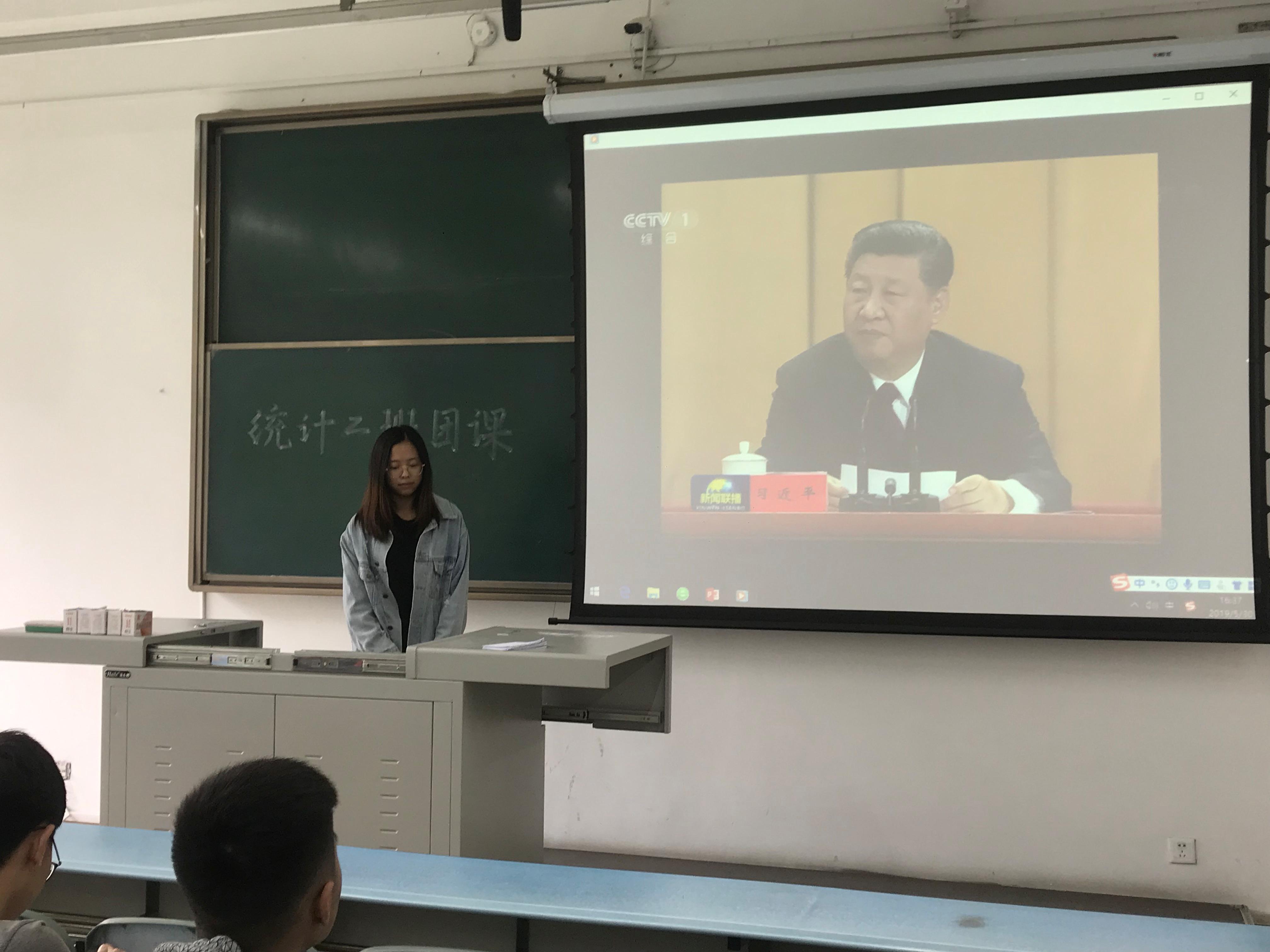 为了深入了解贯彻习近平新时代中国特色社会主义思想和党的十九大精神、习近平总书记“7·2”重要讲话精神,纪念“五四运动”100周年,5月30日下午4点30分,437bwin必赢国际统计学2017-02团支部组织开展了“青年力量,中国力量”主题团日活动。本次团课由团支书俞子歆主持。