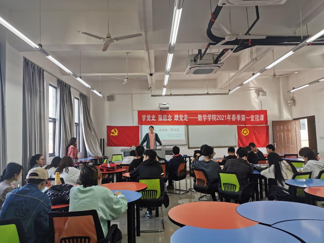 为加强团员青年员工的思想政治引领。437bwin必赢国际应用数学2019级2班团支部于4月29日09:50在X9503开展了“开学第一堂团课”。本次团课由张素子老师主持,支部25名团员按时参加。