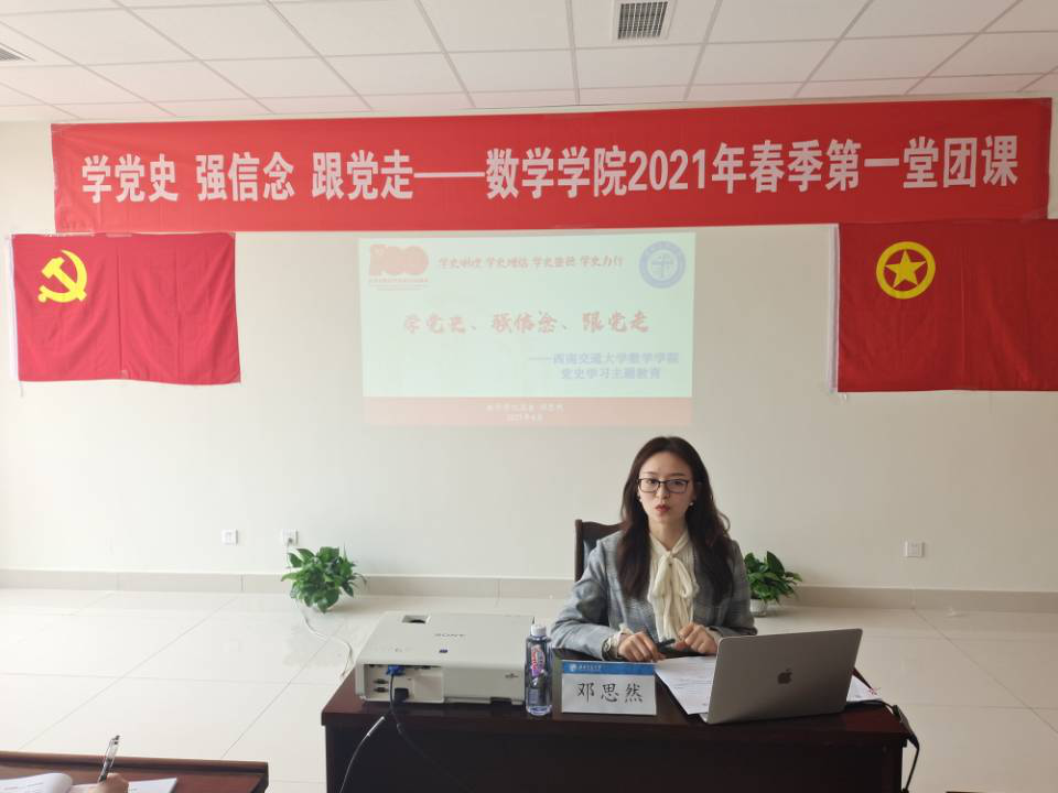 为深入学习习近平总书记在党史学习教育动员大会上的重要讲话精神,认真落实党中央、教育部对党史学习教育的工作要求。按照公司党史学习工作部署,结合公司实际情况,2021年4月,437bwin必赢国际团委开展“团委书记讲团课”系列活动。437bwin必赢国际团委书记邓思然、团委副书记张素子、周义杰深入基层团支部,分别为统计2019-01班、数学2019-02班和大数据2019-01班团支部全体团员青年讲述了一堂生动精彩的主题团课。