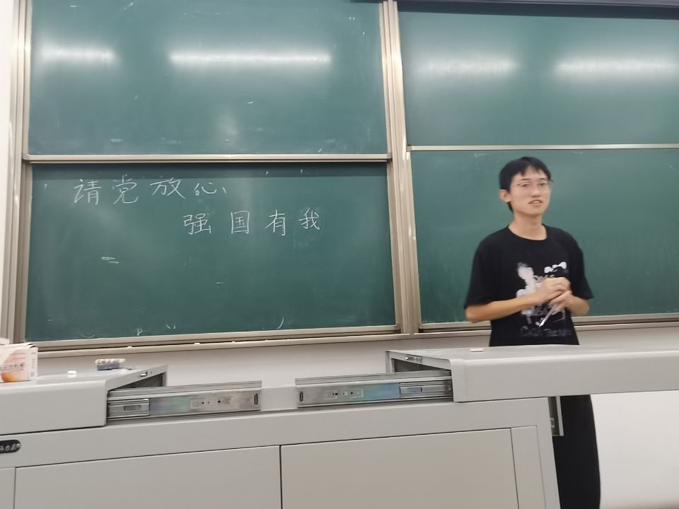 2021年9月26日星期天,应用数学2020级1班,团支部在X2428教室召开了“请党放心,强国有我”主题团课。本次团课由团支书魏俊杰主持。