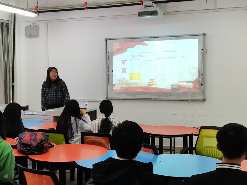 为加强对支部成员的思想政治引领,深入学好党史、新中国史、改革开放史和社会主义发展史,引导支部共青团员将个人成长融入国家发展大局,担当时代责任、勇于砥砺奋斗、练就过硬本领,并响应公司团委秋季学期“开学第一堂团课”的号召。统计学2020级01班团支部于10月26日11:30在X2121开展了“爱国教育”主题团课。本次团课由团支部书记黄玉欣主持,支部34名团员按时参加。
