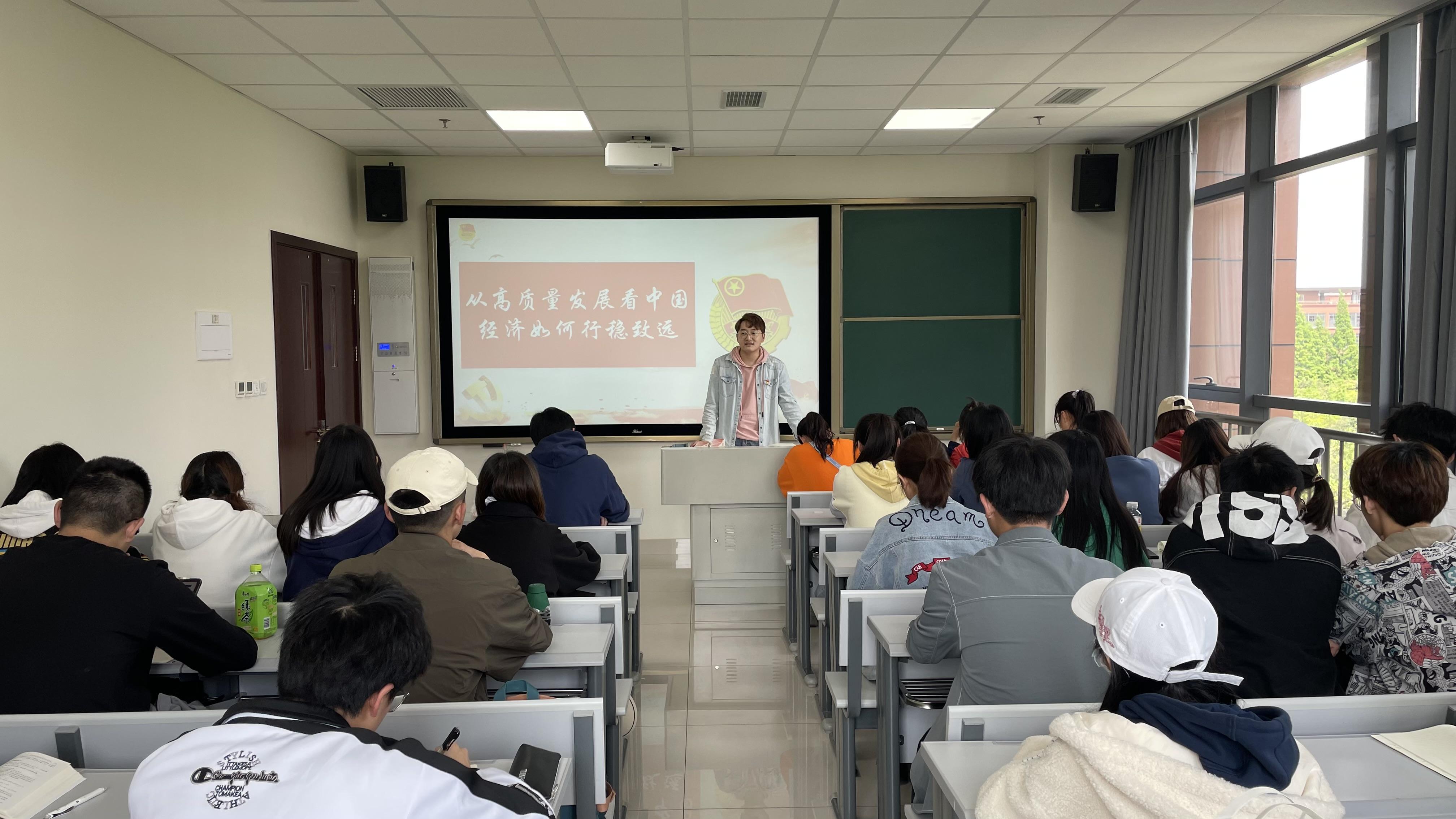437bwin必赢国际团委副书记(员工兼职)周义杰以“从高质量发展看中国经济如何行稳致远”为主题,为统计学2021级1班团支部开展主题团课。周义杰向支部团员青年分享了《共青团给青年学子们的一封信》,并以演讲、视频等丰富形式介绍了中国经济发展历程。同时,周义杰也号召团员青年心系祖国、志存高远、脚踏实地,用不懈奋斗践行“请党放心、强国有我”庄严承诺,以实际行动迎接党的二十大胜利召开。