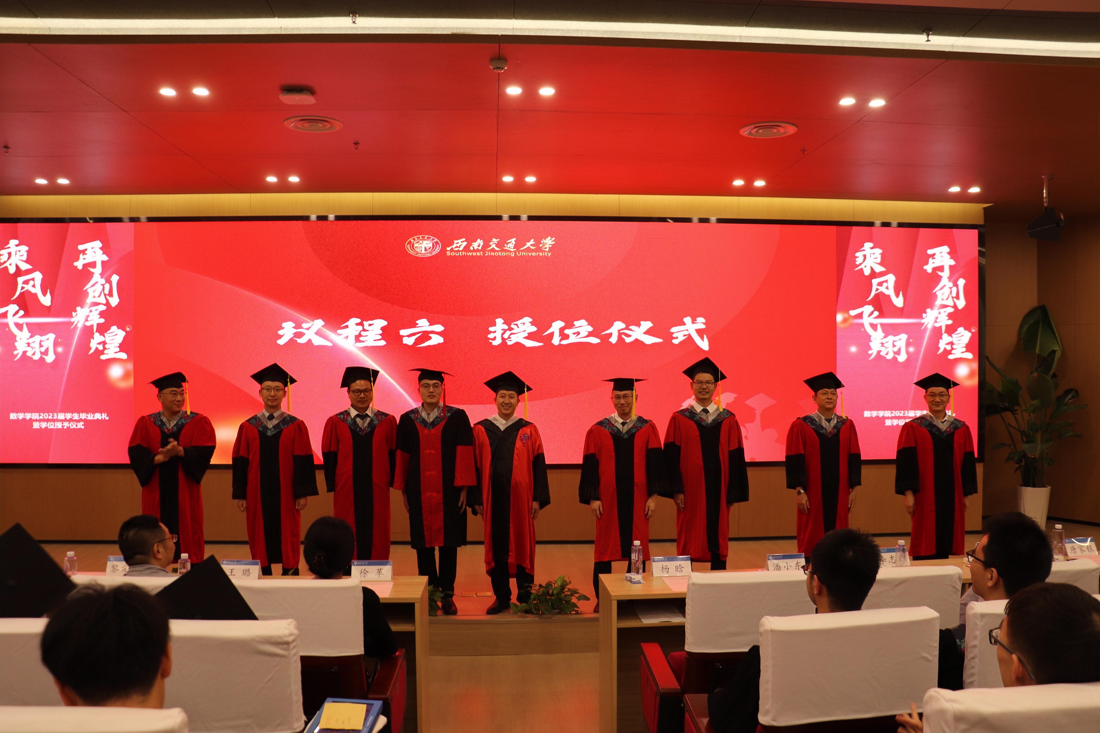 杨晗教授、黎定仕教授、杨洋教授、范小明教授、潘小东副教授、刘品副教授、唐家银副教授、罗荣副教授到主席台前为全体2023届毕业生授位