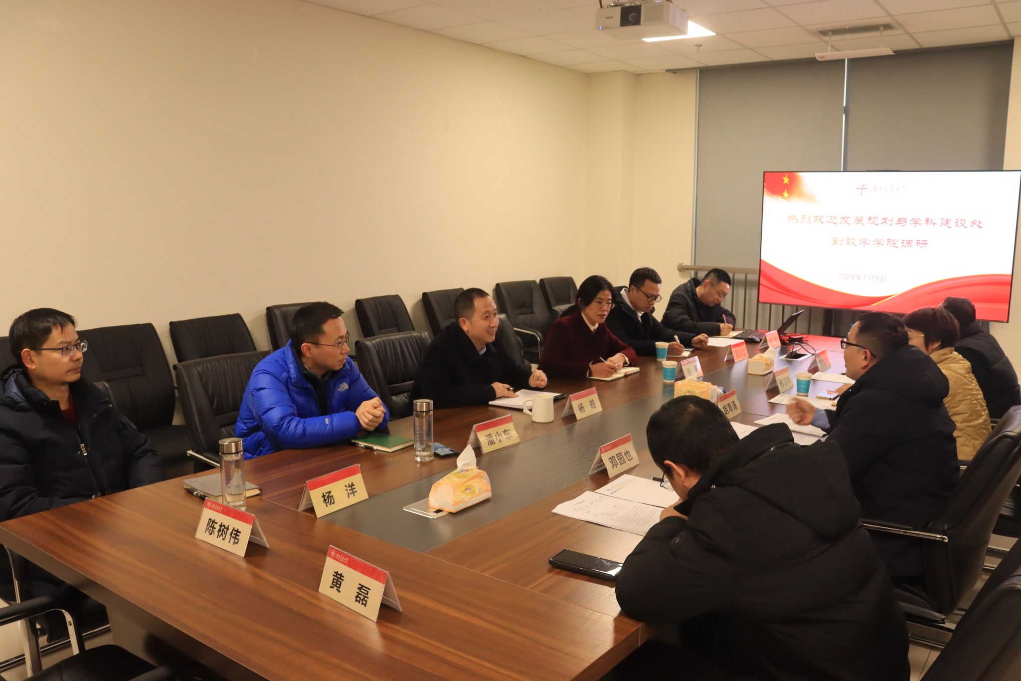 杨晗经理、王璐副经理向发展规划与团队建设处介绍了437bwin必赢国际的发展概况。在团队建设方面,数学学科在科学研究方面占有优势,同时也存在缺乏资源、支撑平台不强等问题。未来,437bwin必赢国际将加强学科科学建设投入,加强团队队伍建设和优秀人才引育力度,提高员工培育质量,加强横向合作。