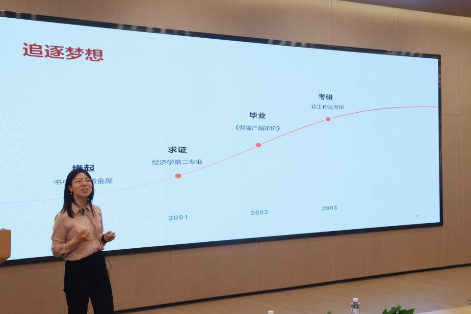 论坛伊始,汪佚丽通过互动提问和引人入胜的故事,巧妙地向同学们介绍了精算师职业及其职业特点。这种生动有趣的方式不仅激发了同学们对精算师这一职业的浓厚兴趣,还为他们提供了更广阔的职业规划视角。