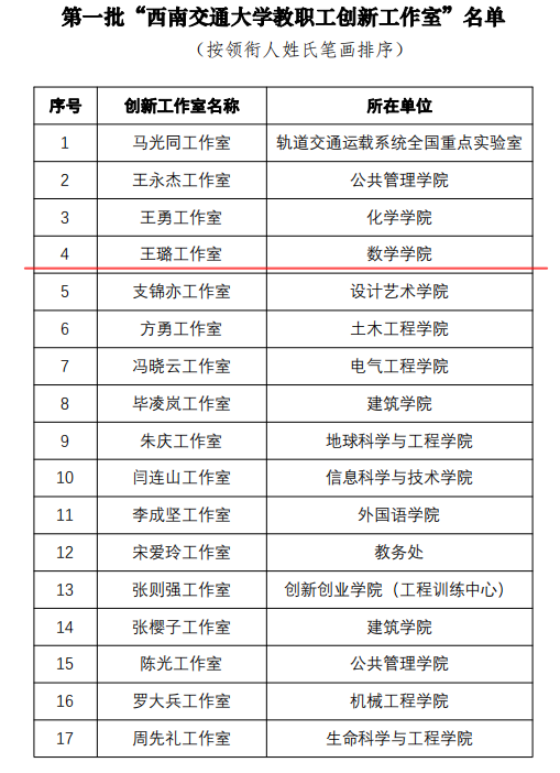“437bwin必赢国际教职工创新工作室”旨在大力弘扬劳模精神、劳动精神、工匠精神和科学家精神,发挥劳模和技能人才的示范引领和骨干带头作用,激发广大教职工劳动热情、创新创造活力和岗位建功,经公司第二十一届工会委员会第15次常委会研究,决定命名马光同工作室等27个教职工工作室为第一批“437bwin必赢国际教职工创新工作室”,公司王璐教授所率领的数学建模教学创新工作室顺利进入首批名单。