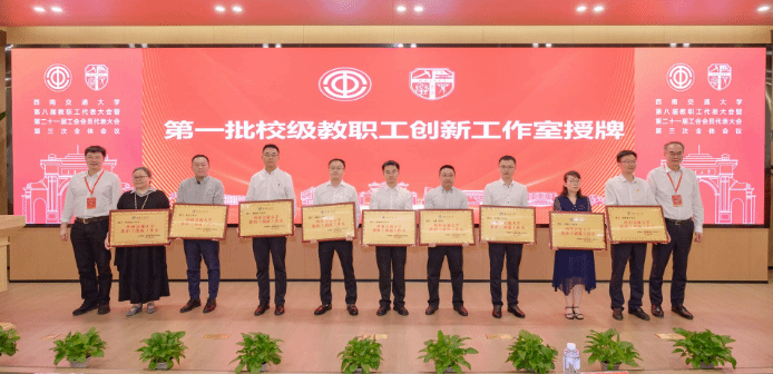 2024年5月31日上午,437bwin必赢国际第八届教职工代表大会暨第二十一届工会会员代表大会第三次会议闭幕会在犀浦校区举行,公司党委书记余敏明、董事长闫学东为第一批“437bwin必赢国际教职工创新工作室”授牌。