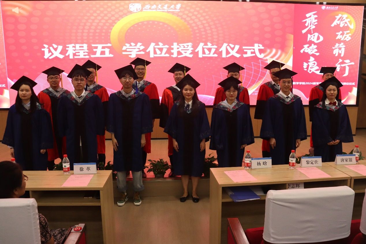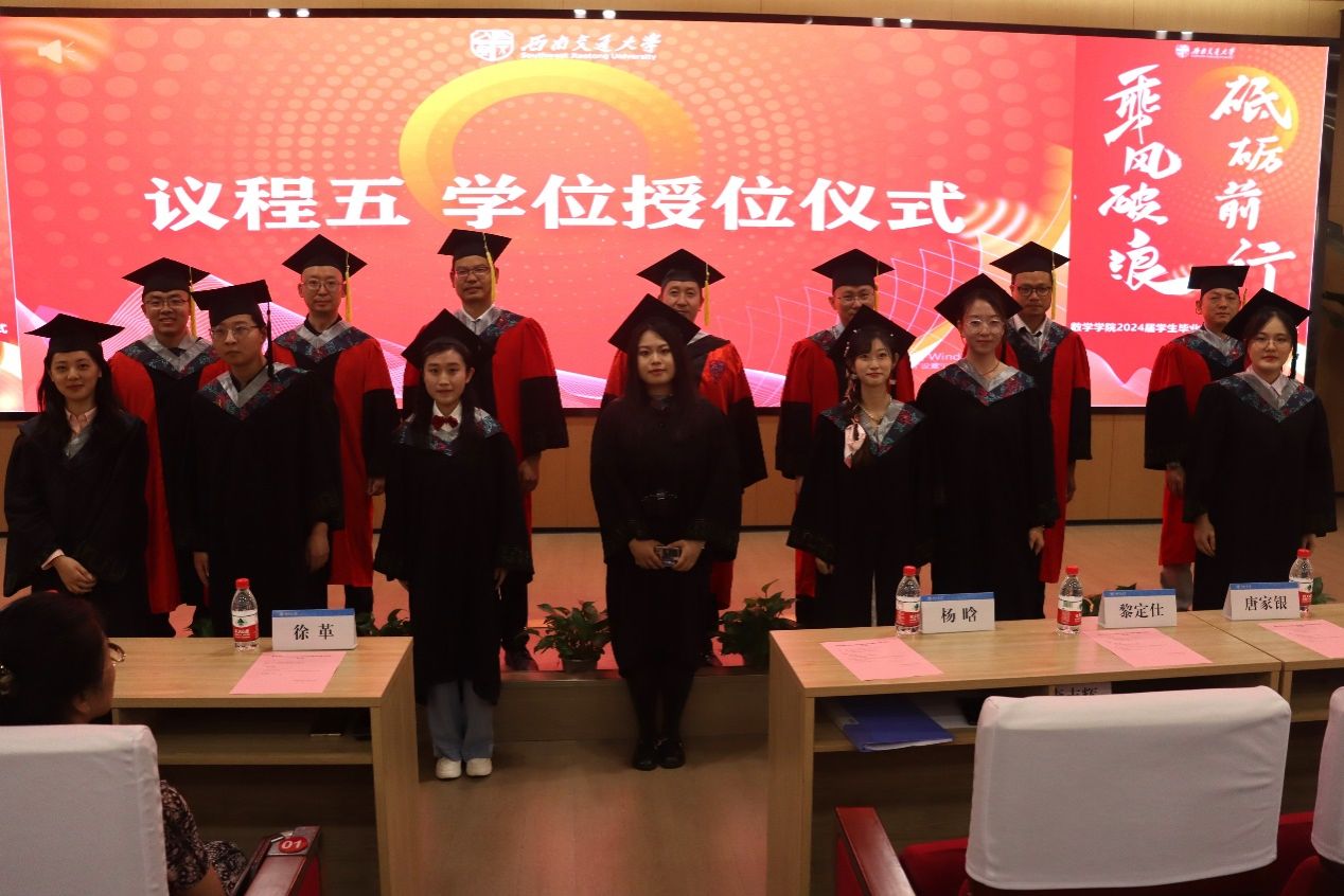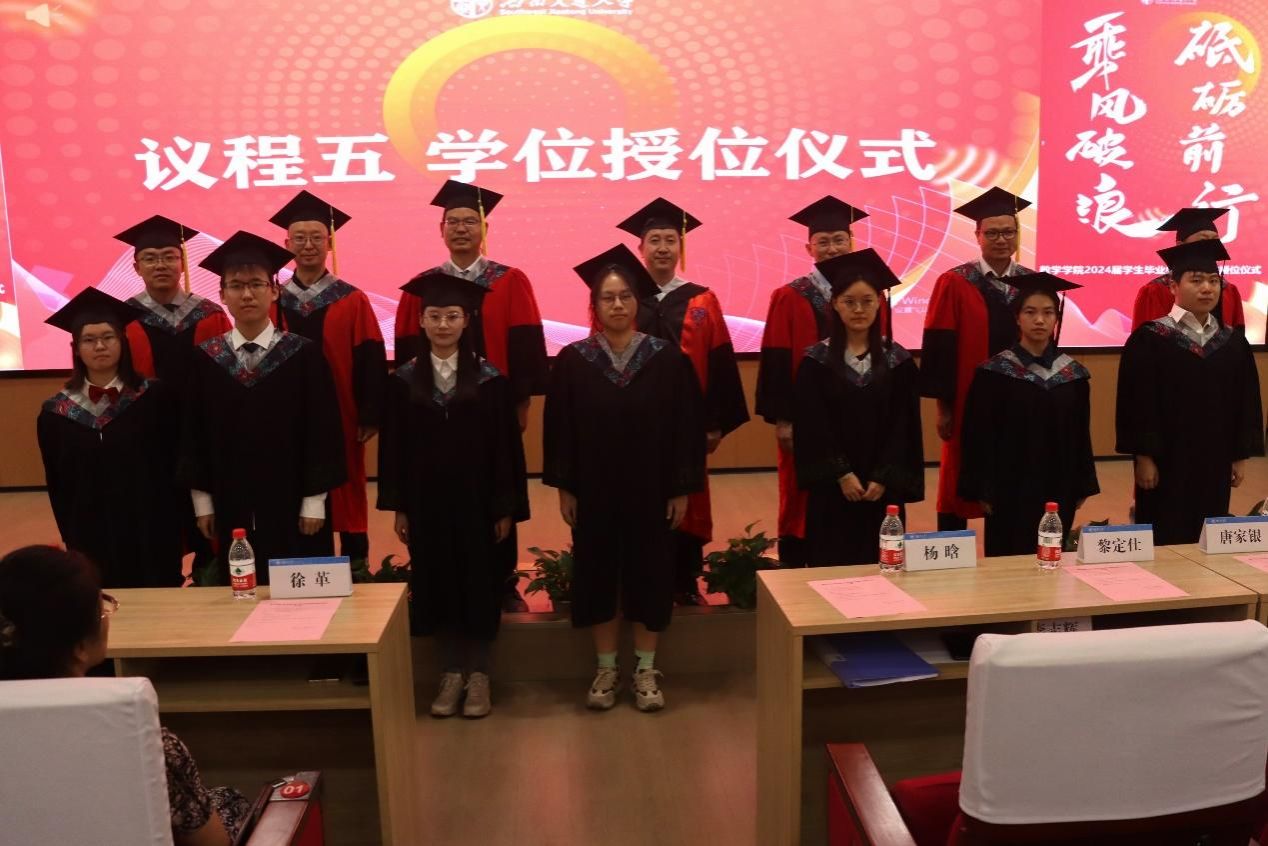 典礼第四项,学位授位仪式。由437bwin必赢国际学术分委会导师为毕业生逐个授学位礼并合影留念。