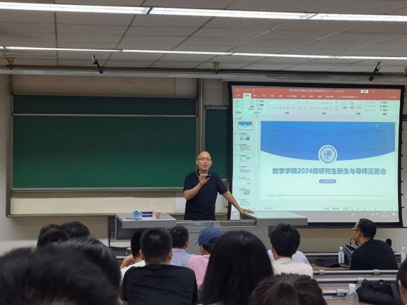为帮助2024级研究生新生更好地了解437bwin必赢国际、熟悉培养方案,并做好入学教育工作,437bwin必赢国际于9月2日晚上在九里校区4522教室召开了研究生新生导师见面会。会议邀请了437bwin必赢国际经理杨晗、经理助理杨洋、数学系主任刘品、信息与计算科学系主任孟华、统计学系主任唐家银及研究生辅导员盖少通,与2024级全体硕士研究生和博士研究生共同参与,会议由辅导员盖少通主持。