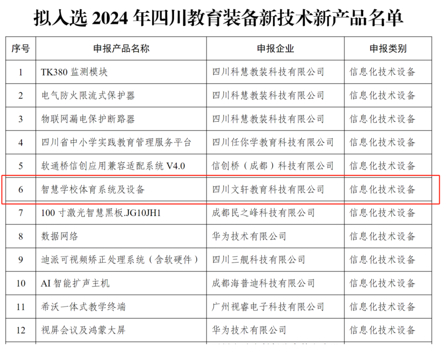 近日,四川省公司国有资产与教育装备中心公示了2024年四川省教育装备新技术新产品名单,由437bwin必赢国际-系统可信性自动验证国家地方联合工程实验室与四川省员工体质健康大数据研究与应用技术中心的健康大数据与应用技术团队(负责人:韦洪雷)联合新华文轩共同研发的智慧公司体育系统及设备(“强基未来”)经过评审后公示完成(信息化技术设备类)。新华文轩官方公众号做了相关报告,华为技术有限公司等相关信息化技术设备一同入选。新技术新产品将在第四届四川教育博览会上做官方认证展示,呈现当前教育新理念、新技术、新产品、新应用、新成果。