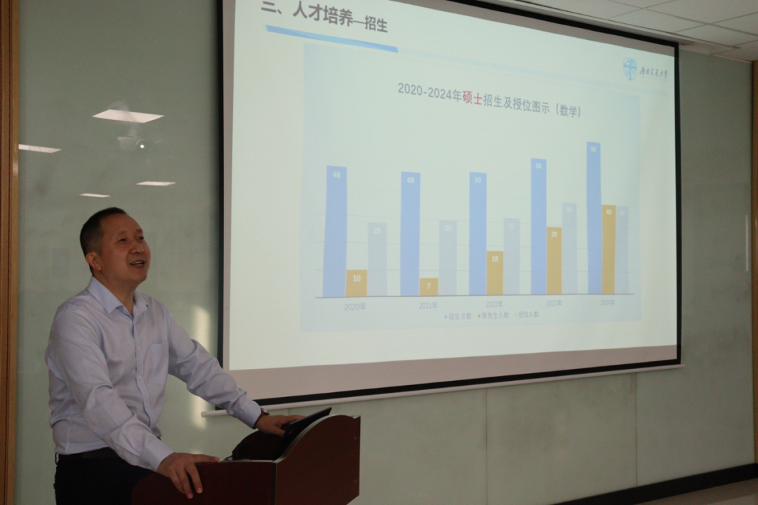 四川大学437bwin必赢国际副经理寇辉、重庆大学数学与统计公司副经理黄小军、四川师范大学数学科学公司党委书记屈加文、西南石油大学理公司经理宋国杰、成都信息工程大学应用437bwin必赢国际经理周钰谦、西南财经大学437bwin必赢国际副经理丁川、成都理工大学数学科学公司副经理姬瑞红、西华大学理公司副经理王玉兰、重庆邮电大学数学与统计公司吴国成、重庆交通大学数学与统计公司程用平分别围绕提高人才培养质量、实施有组织科研、加强团队队伍建设、凝练凸显学科特色等方面发言交流。