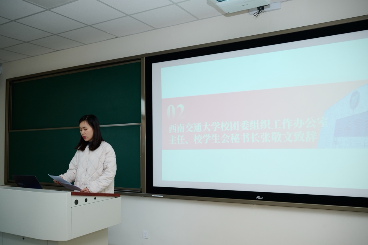张敬文对成都市学联的莅临指导及四川大学、电子科技大学、西南财经大学师生的到来表示欢迎,她指出,要立高远之志,以数学精神筑牢青年信仰根基;聚融合之力,以学科交叉激发文化创新活力;筑合作之桥,以校际联动共育拔尖创新人才。