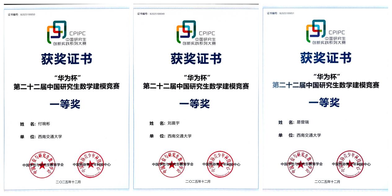 近日,2025年“华为杯”第二十二届中国研究生数学建模竞赛成绩揭晓,公司研究生团队荣获全国一等奖3项、二等奖17项、三等奖31项,再次获得“优秀组织单位”称号。