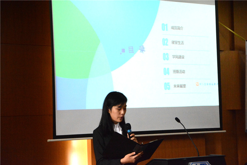首先主持人为大家介绍了答辩的规则以及评分标准。第一个出场答辩的是统计一班。班长王朔作为答辩人,将班级口号“脚踏实地,眼望前方;志在心中,开创辉煌”的涵义贯穿其整个答辩过程。而充满活力的篮球赛、迎新晚会和拜访养老院等活动,都展示了班级独特的风采。接下来统计一班用告白气球的歌声演绎青春里美妙的相遇,之后的海草舞也展示了班级的无限活力。班级展示结束之后,评委老师建议在以后的班级建设中多开展与学科竞赛有关的团日活动。