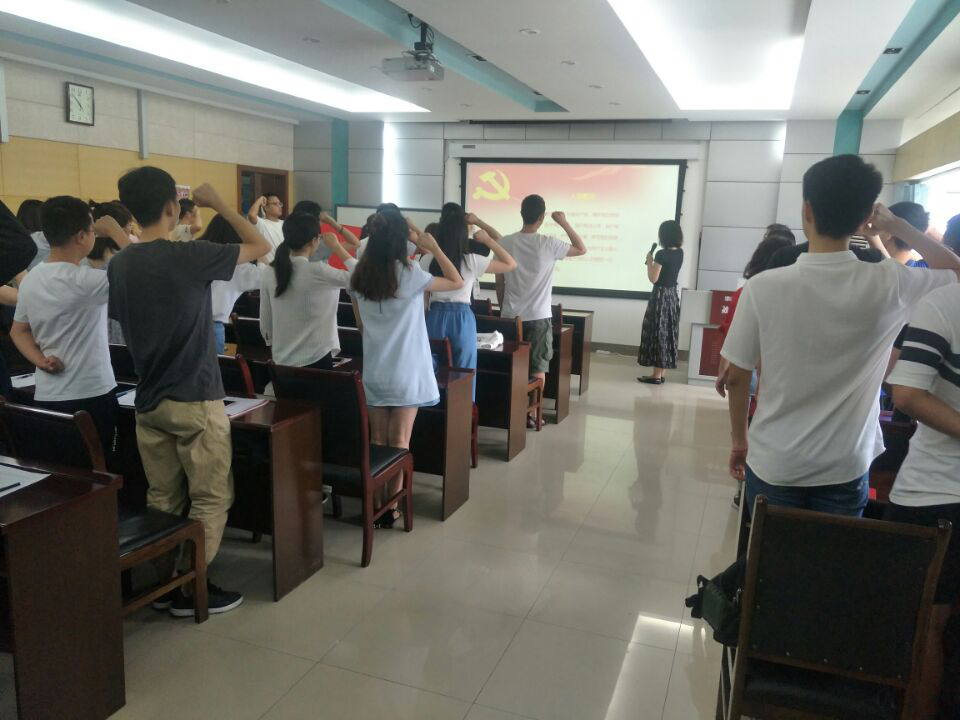 宣誓仪式由卢怡帆领誓,杨育鸿监誓。全体党员面向党旗,举起右手,在领誓人的逐句领读下,用慷慨激昂的语气,庄严向党旗宣誓,表达对党的忠诚、为共产主义事业奋斗终身的决心。
