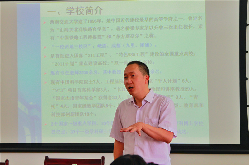 开营仪式后进行了公司和公司建设发展专题介绍。常务副经理杨晗介绍了数公司的教育概况,杨经理期望同学们积极利用参加夏令营的机会,开阔眼界,增长见识,充分了解西南交大丰富的科研资源,深刻感受数公司深厚的文化底蕴, 深入领悟数学在科技生活中的重要作用和无穷魅力。
