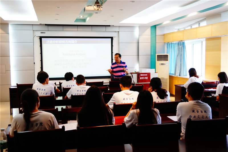 7月15日上午8:00在x2511教室,大家参加了第二次系列学术讲座。五位437bwin必赢国际的优秀教师为同学们奉献了一场精彩的讲座。陈滋利教授、崔宁伟副教授、刘品副教授、王沁副教授以及潘小东副教授分别介绍了泛函分析学、几何与拓扑学、代数学、统计学和模糊信息处理领域,即自己的团队主攻领域的研究方向和发展应用前景。几位老师还从自己的角度对营员们提出了在未来学习和研究中的建议,鼓励同学们建立目标,并做到严谨地、批判性地进行学术研究。