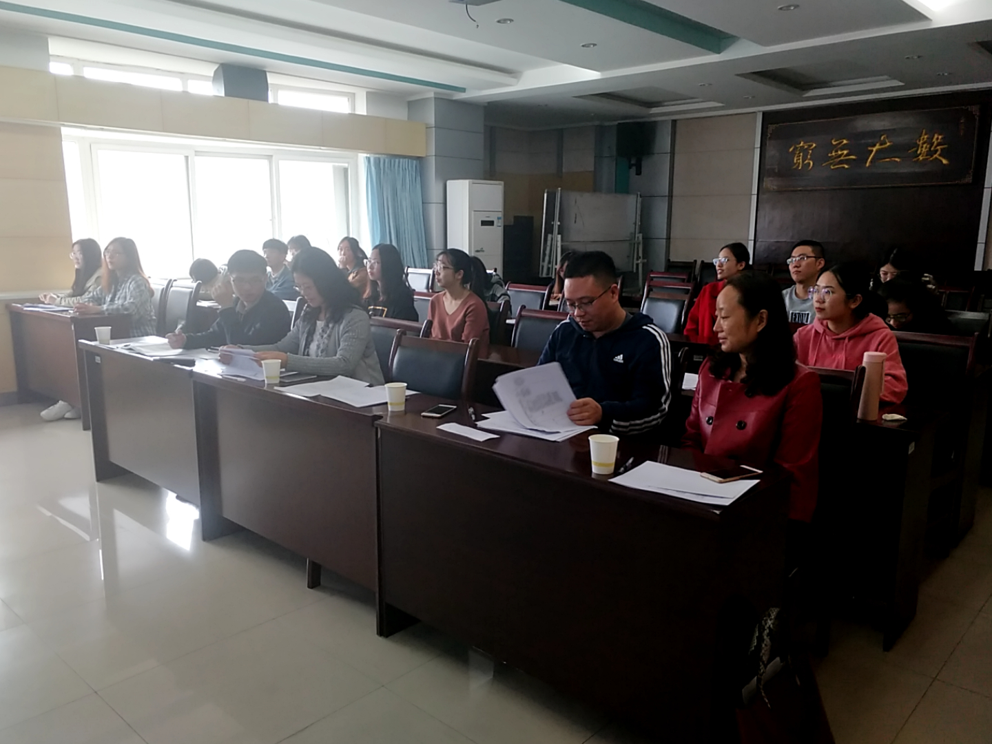 答辩开始之前,杨育鸿书记介绍了本次评选规则和参选条件,宣读了“三评”纪律提醒和要求。随即,杨育鸿书记宣布答辩开始,评选答辩正式开始。