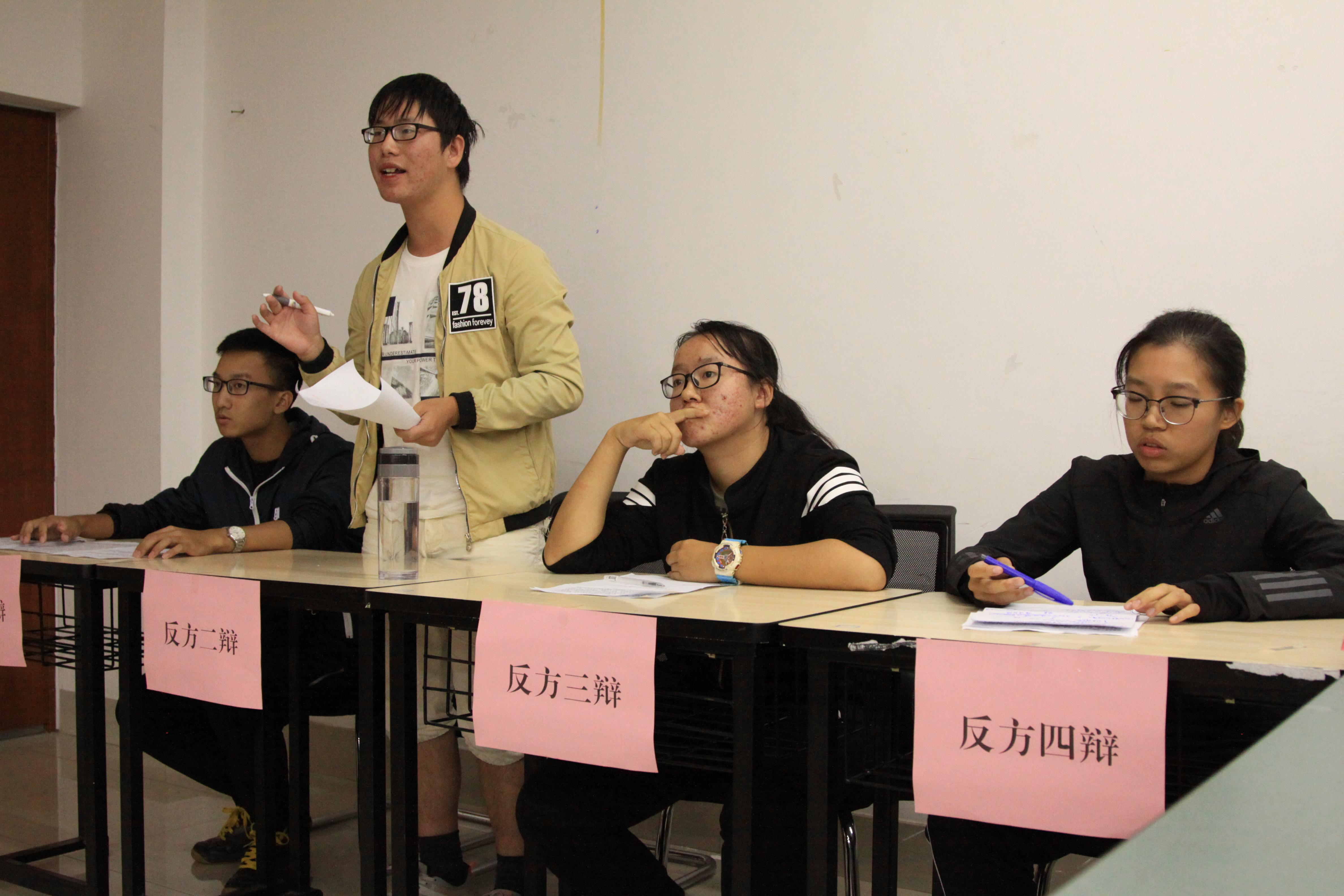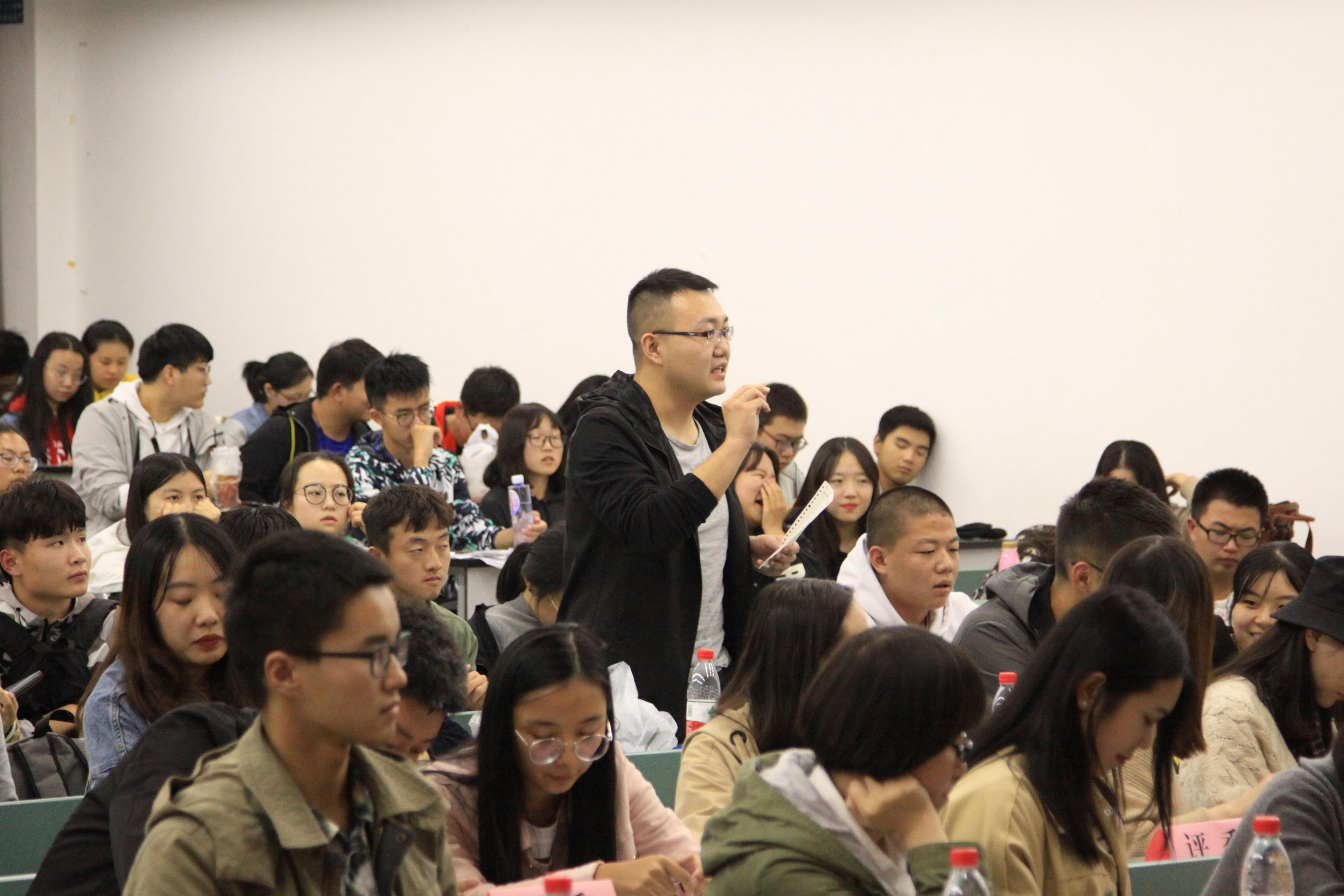 经过短暂的观众提问后,比赛进入总结阶段。2015级辩论队队长吕艳新对辩论双方的出现的不足与缺点进行了详细的分析评价,给辩论双方上了一堂生动的辩论课。