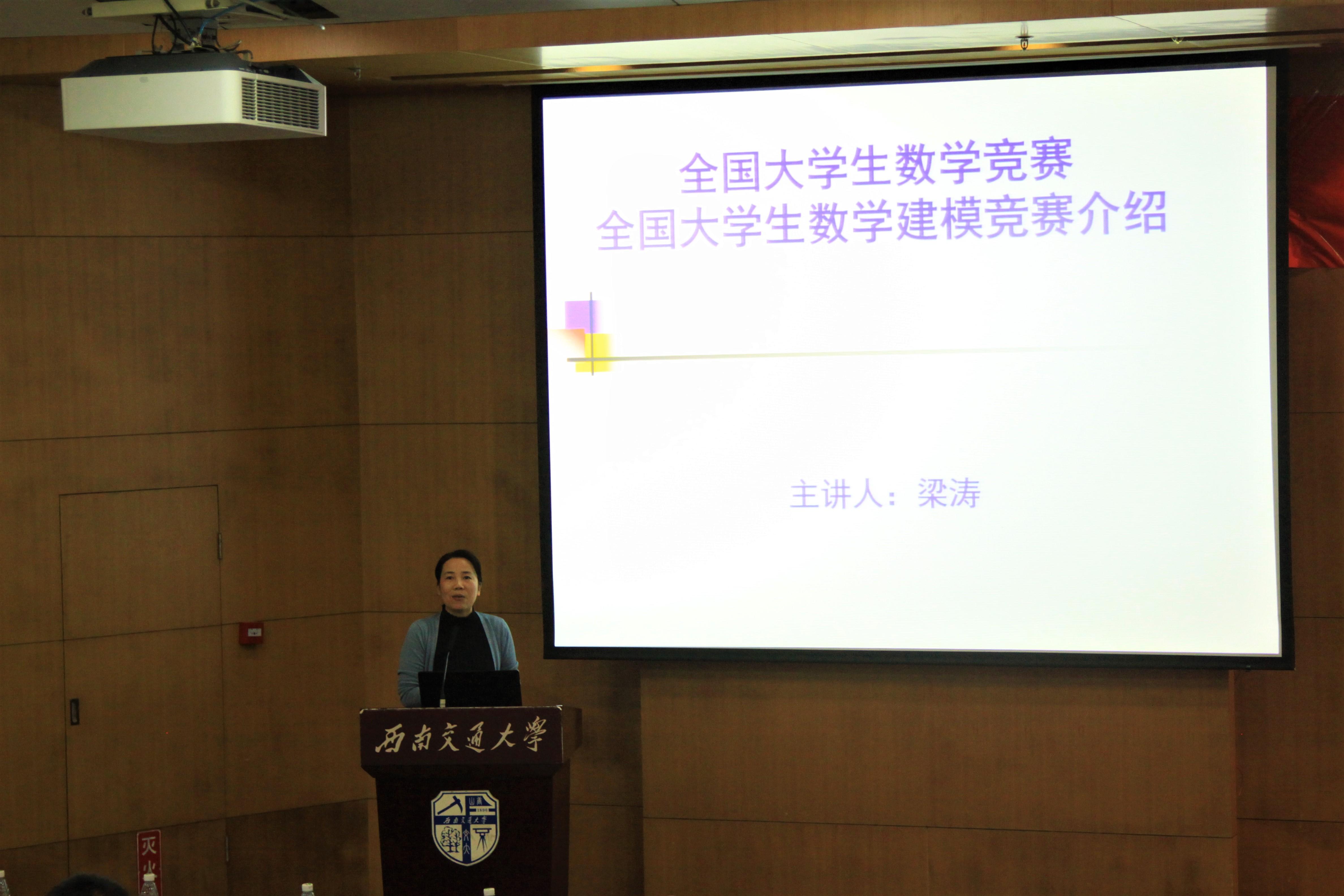 接下来是437bwin必赢国际公共数学研究部主任、全国老员工数学建模竞赛国家优秀指导老师梁涛副教授为大家介绍和讲解全国老员工数学竞赛和数学建模竞赛。梁涛教授分别从竞赛起源、赛制、参赛要求、比赛内容等几个方面具体地介绍了竞赛,并多次展示历年赛题,进行讲解,让同学们对竞赛有了充分的认识。同时梁涛教授也大力提倡同学们参赛,以“一次参赛,终身受益”为结语结束了讲解。数学竞赛系列讲座到此结束。