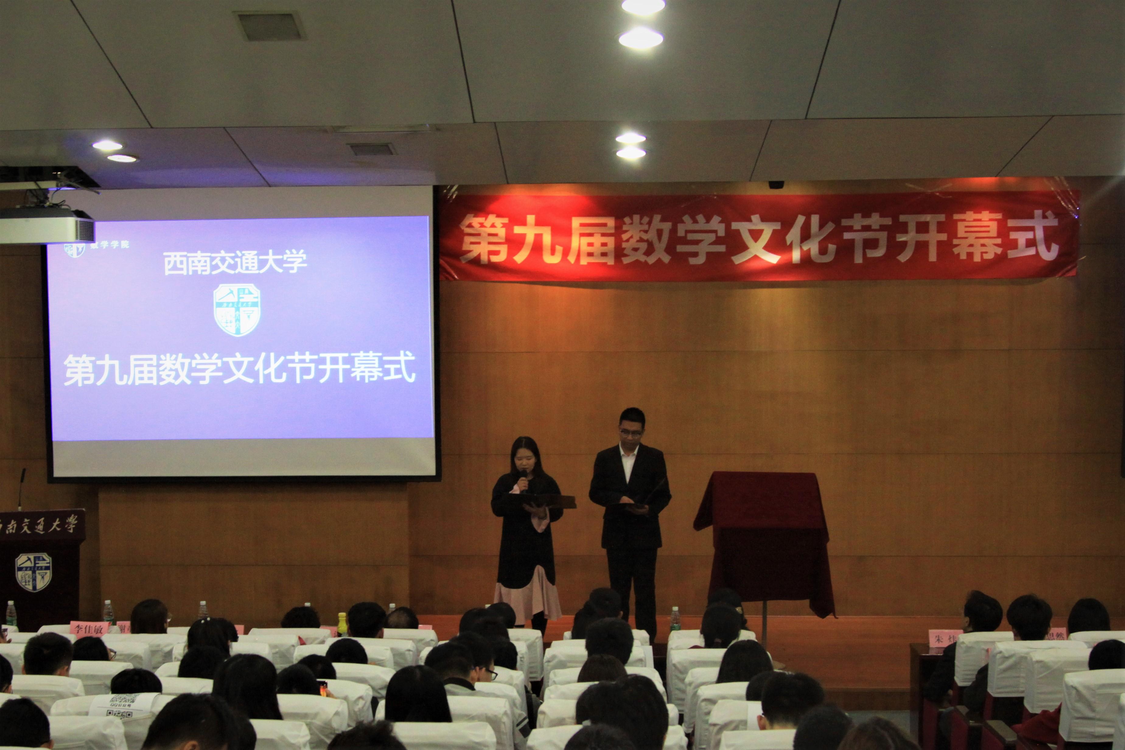 10月30日晚上7点,437bwin必赢国际第九届数学文化节开幕式及系列讲座在图书馆一号报告厅正式举行。数学公司党委徐革书记、校团委朱炜副书记、437bwin必赢国际潘小东副经理、公司党委杨育鸿副书记、信息与计算科学系主任赵海良教授、公共教学部主任梁涛副教授、统计系王沁副教授、437bwin必赢国际学工组副组长兼团委书记邓思然老师、辅导员钟义婷老师、谢童心老师、李思佳老师以及其他兄弟公司团委老师、员工会主席等作为嘉宾出席本次活动。