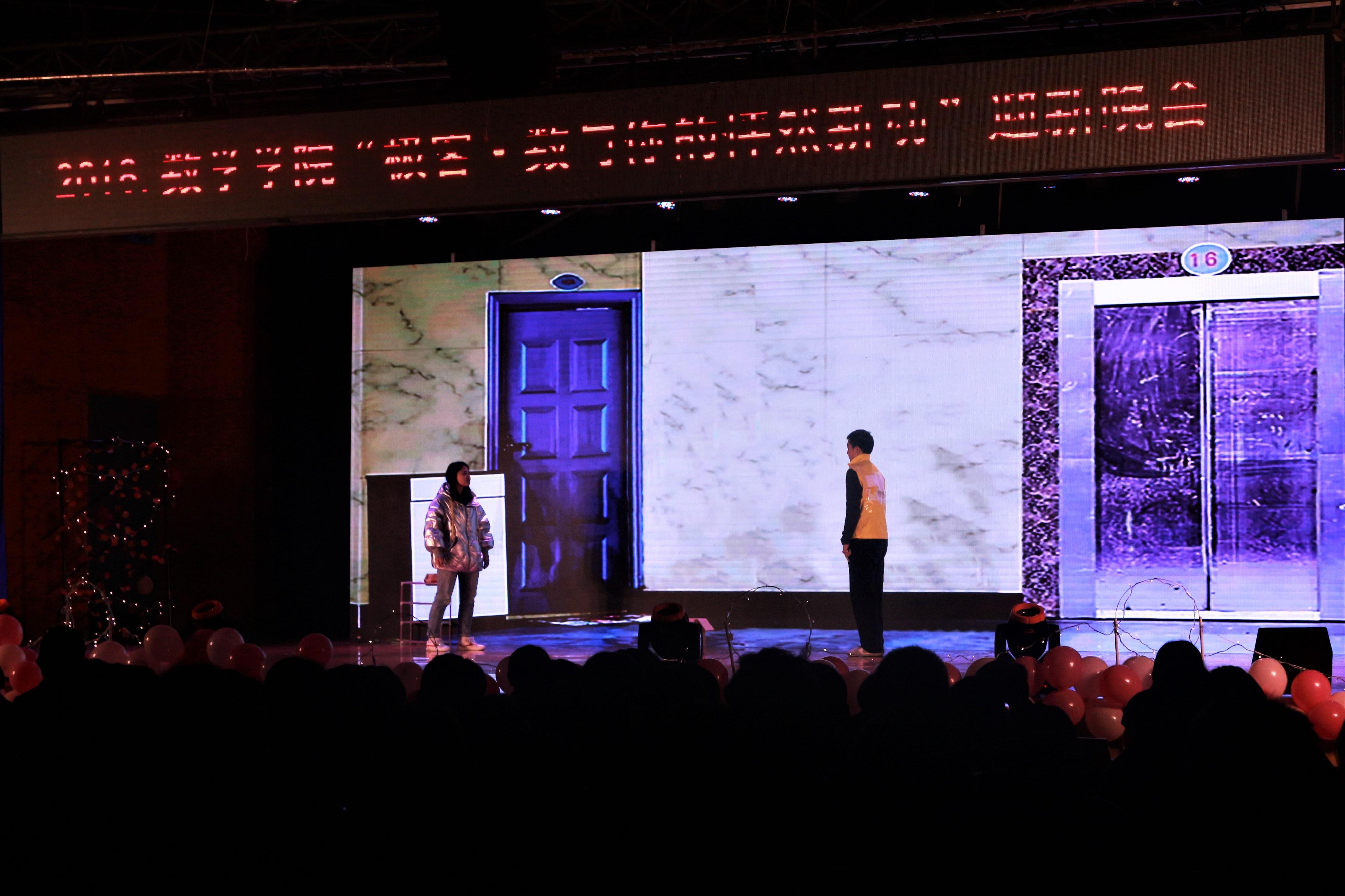 第五个节目是应数一班的音乐剧表演《木偶》,丰富精彩的表演形式,内涵深刻,衔接有序的情节都给观众留下了深刻的印象。第六个节目是爵士舞《Likely Du Du Du Du》,六位高挑漂亮的小姐姐用精湛迷人的舞姿,默契十足的配合征服了在场的所有观众,赢得了无数呐喊和掌声。接下来的节目是由一对俊男靓女深情演绎歌曲《燕归巢》,他们美妙的歌喉,精彩的互动得到观众的喝彩。然后进行了本次迎新晚会第二次抽奖,奖品为口红和香水。