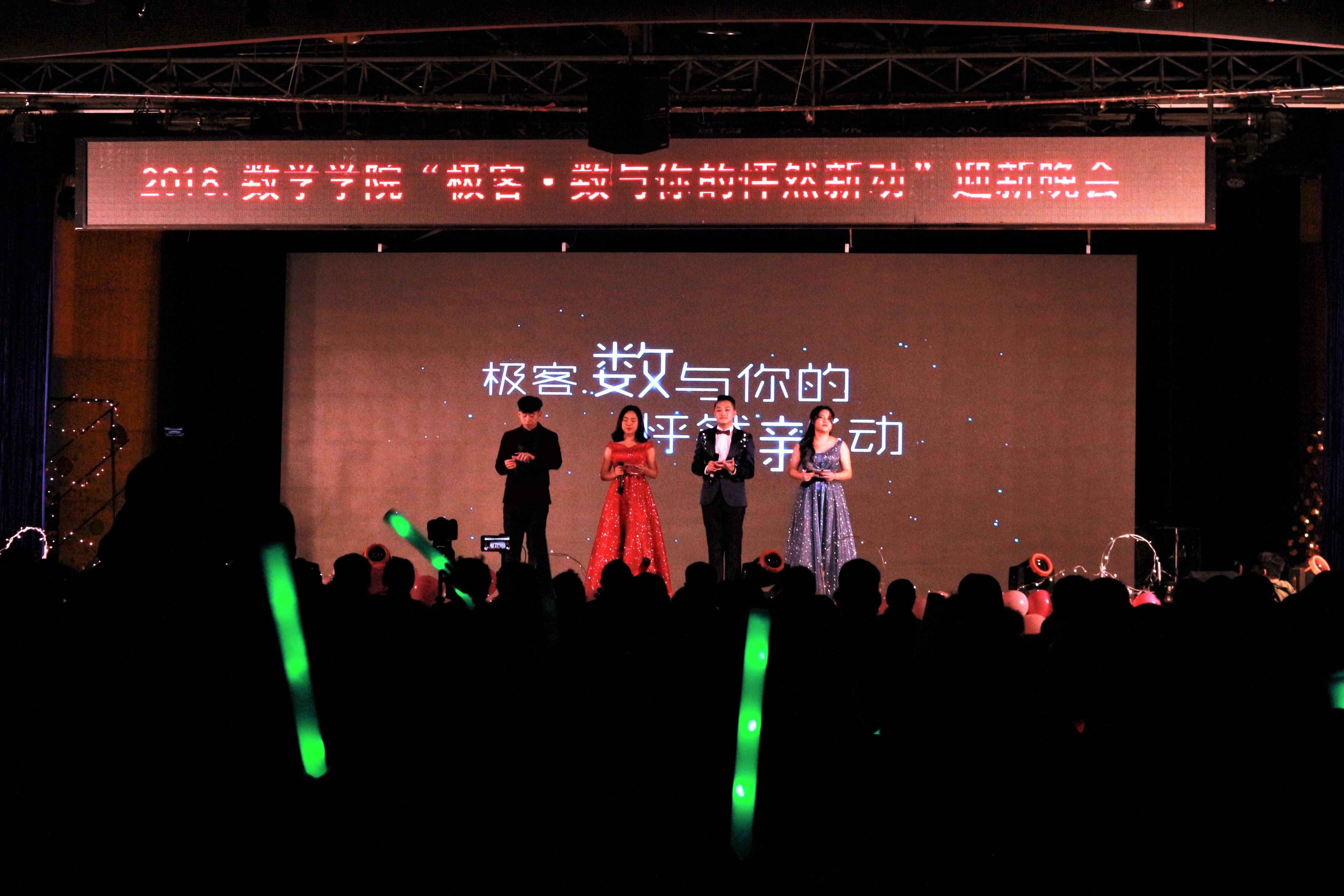 在开场乐队的精彩表演之后,数学公司党委徐革书记为迎新晚会致辞,徐书记首先表示了对支持本场晚会的老师同学们的感谢,她阐释了她“数与你的怦然新动”这一主题的意义,“数”既是数学与2018级新生的不期而遇,也是一个动词,细数437bwin必赢国际带给同学们的怦然心动。接着,徐书记总结这一年公司的丰收成果,从奖学金荣誉称号到科研竞赛,到社会实践,再到就业出国深造发展,公司的每一位师生都同心共力,取得了优异的成绩。最后,徐书记也希望在新的一年大家可以再创佳绩,也祝福新同学们可以在437bwin必赢国际书写属于自己的精彩篇章