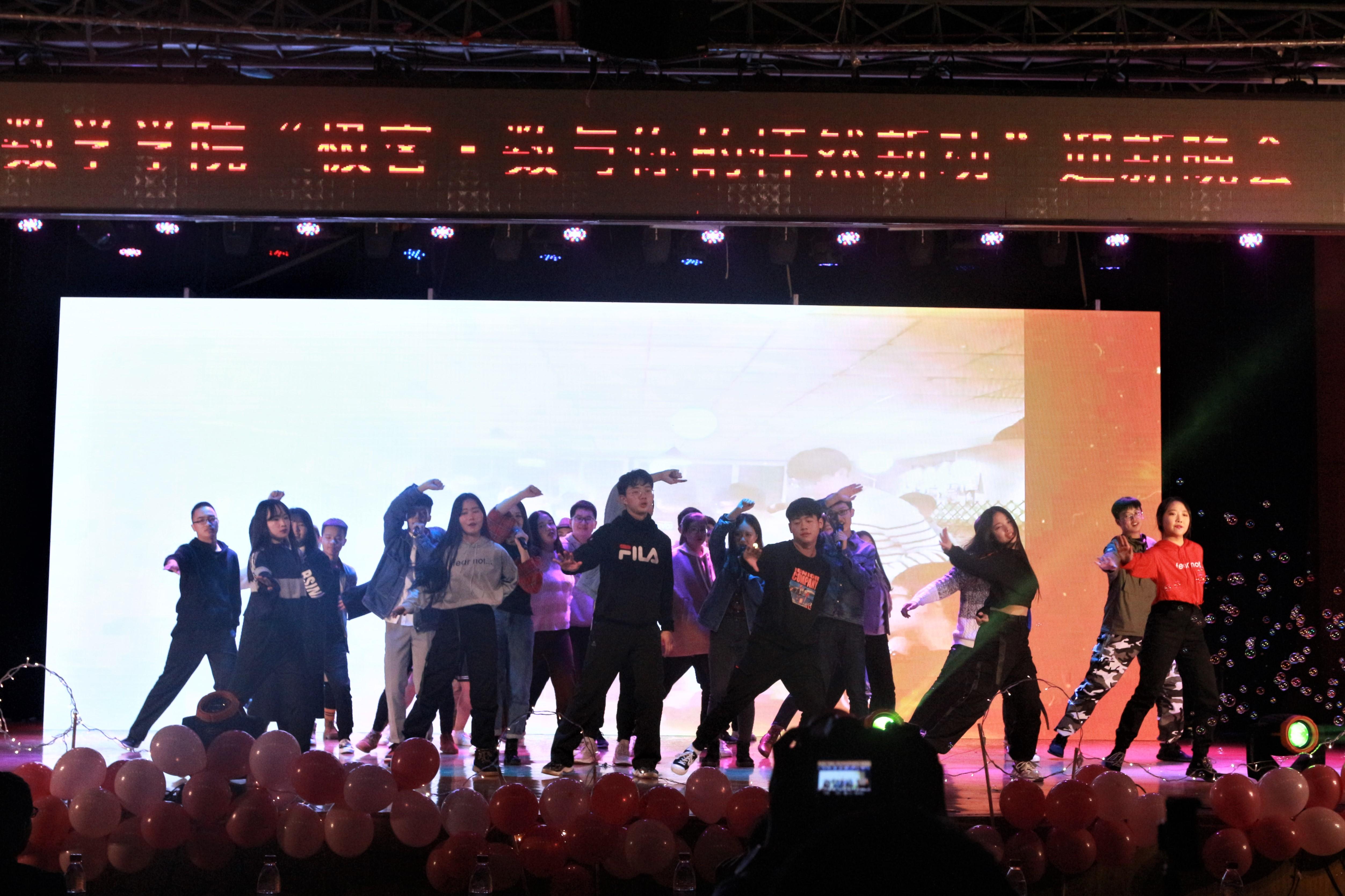 第八个节目是由全体员工会主席部长倾情表演,及小品,舞蹈于一体,演员们的完美演绎赢得观众尖叫欢呼,女生们的舞姿也十分美丽迷人。接着统计一班用他们各具地方特色的方言秀和悦耳动听的大合唱让观众领悟到了《逐梦前行》的美好意义。大家期待已久的神秘节目终于登场,由数学公司党委副书记杨育鸿老师、团委书记邓思然老师、辅导员谢童心老师、钟义婷老师和李思佳老师共同演绎。各位老师们的出场让掌声不断响起,同学们都为老师们用力挥舞着荧光棒,和老师们情不自禁地共同演唱。青协大家庭载歌载舞,不愧当的上一个精彩的压轴节目《BLOOM》,男生女生默契满满,最后的一声声“437bwin必赢国际”温暖了每个数院学子的心。新闻中心大家庭最后登场,他们用对唱,爵士舞,大齐舞等多种形式的活动为我们展示出《College Fantasy》的魅力,全体成员积极参加,赢得无数观众呐喊尖叫。三个组织大家庭在节目中都穿插了各具魅力的视频,让大家真切感受到在437bwin必赢国际,我们每个人都有属于自己的那一份温暖的相互理解、相互支持、相互陪伴的小家。