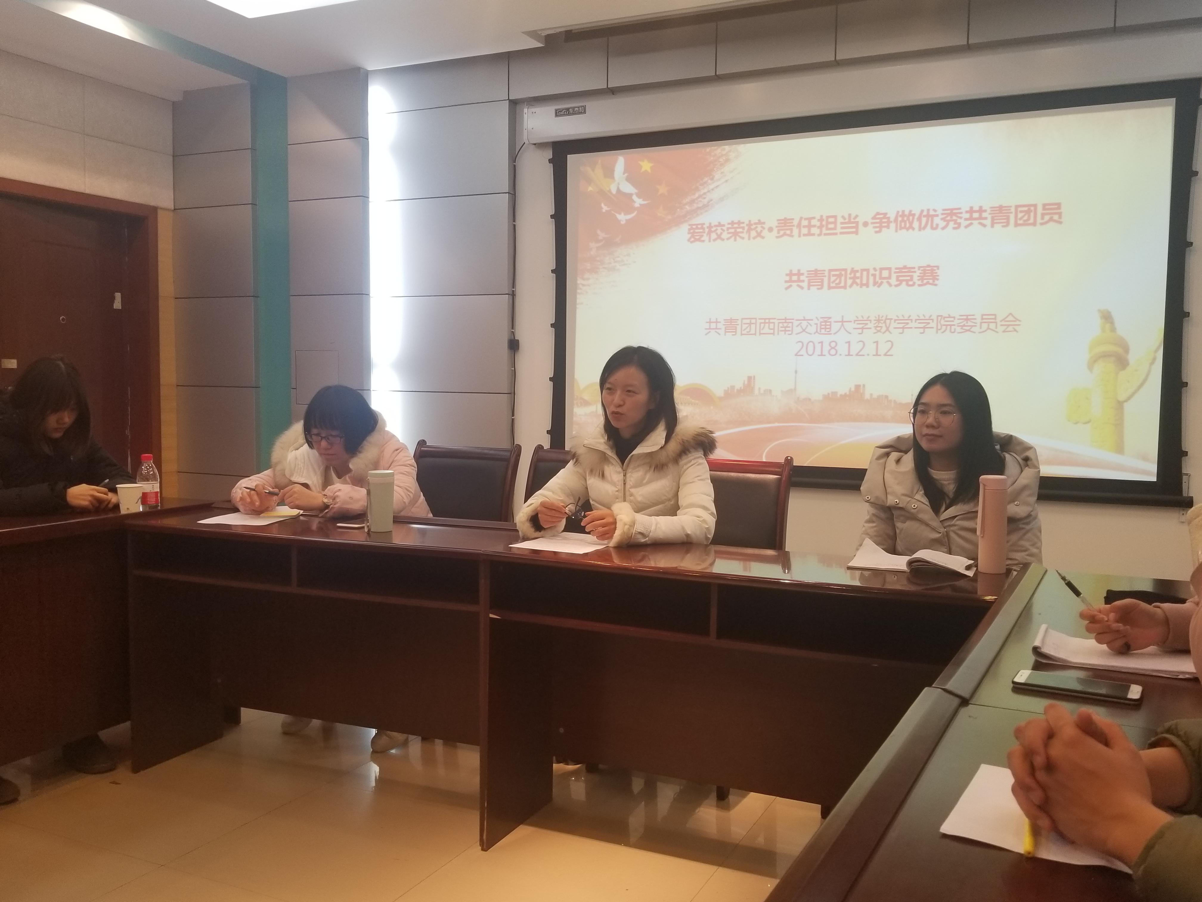 为响应校团委号召,让员工对党团知识有更多了解,12月12日晚上7:30,437bwin必赢国际团委在X2511召开“爱校荣校·责任担当·争做优秀共青团员”共青团知识竞赛暨团委年度总结大会。437bwin必赢国际团员干部代表邓思然老师、17级辅导员谢童心老师、15级辅导员李思佳老师出席本次活动,437bwin必赢国际各大组织团员代表参与了本次大会。
