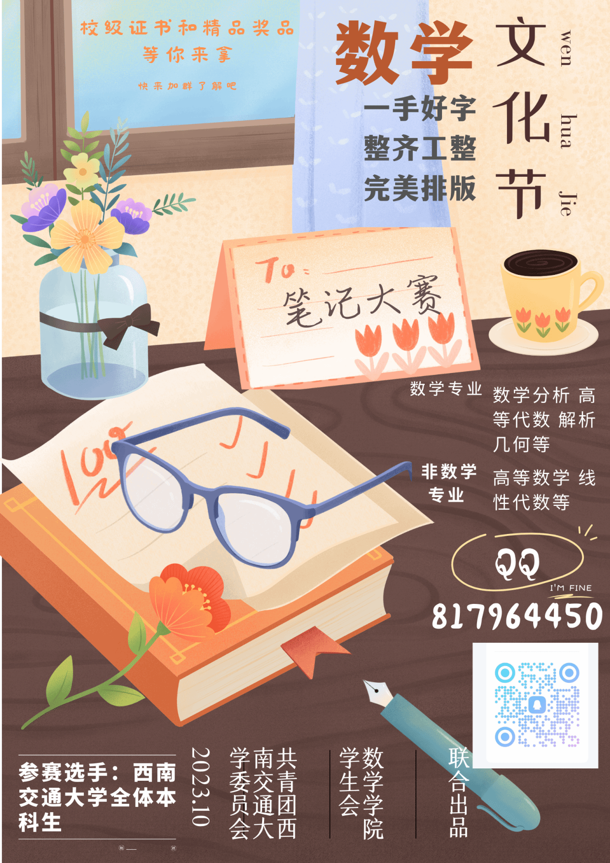 为进一步加强学风建设,发挥优秀数学笔记的模范带头作用,加强同学之间的学习交流,树立良好的学习之风,宣传优秀学习榜样,夯实学科基础,形成学数学、懂数学、爱数学的良好氛围。传承“严谨治学,严谨要求”的交大传统,增强同学们数理强国的信念,特举办437bwin必赢国际第三届数学课程笔记大赛。